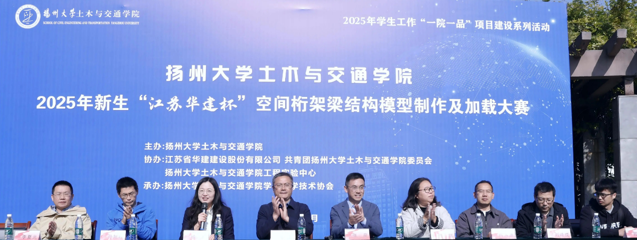 11月12日,由江蘇華建與揚州大學(xué)土木與交通學(xué)院聯(lián)合主辦的2025年“江蘇華建杯”空間桁架梁結(jié)構(gòu)模型制作及加載大賽,在揚州大學(xué)揚子津校區(qū)隆重開幕。建工控股集團(tuán)黨...